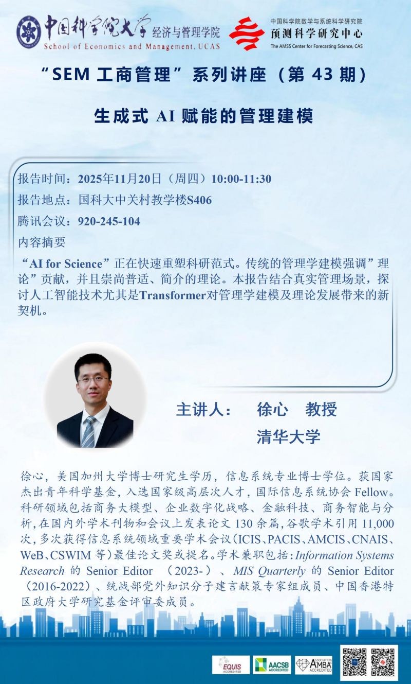 地点:中关村教学楼S406 腾讯会议:920-245-104主讲人:徐心联系人:经管学院联系方式:01082680913开始时间:2025-11-20 10:00:00结束时间:2025-11-20 11:30:00内容: