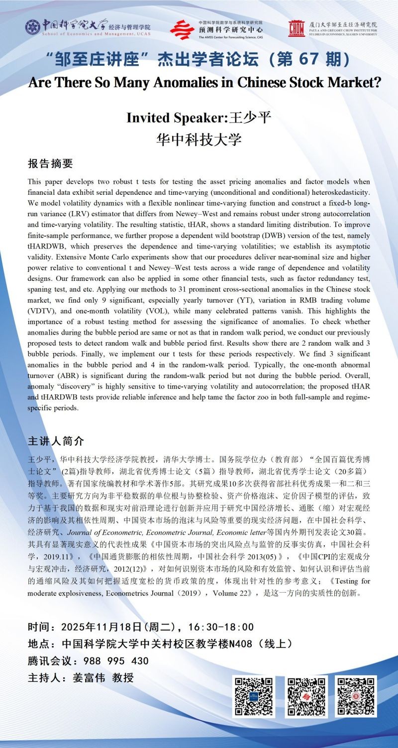 地点:中关村校区教学楼N408(线上) 腾讯会议:988 995 430主讲人:王少平联系人:经管学院联系方式:01082680913开始时间:2025-11-18 16:30:00结束时间:2025-11-18 18:00:00内容: